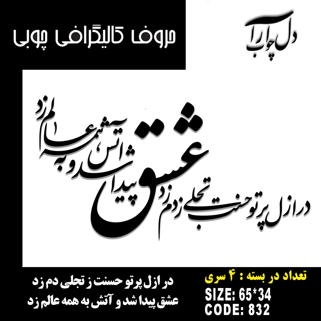 حروف کالیگرافی چوبی 4 سری در ازل پرتو حسنت ز تجلی دم زد عشق پیدا شد و آتش به همه عالم زد