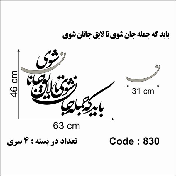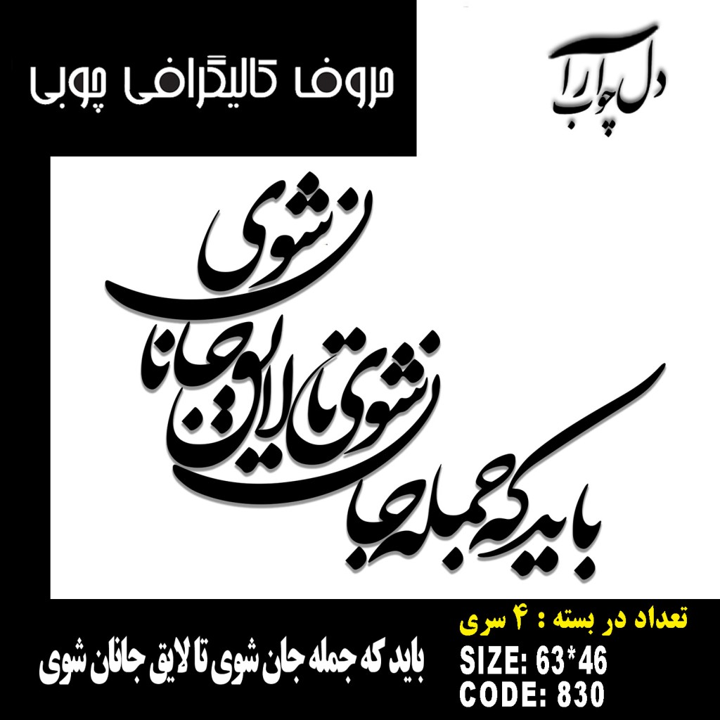 حروف کالیگرافی چوبی 4 سری باید که جمله جان شوی تا لایق جانان شوی